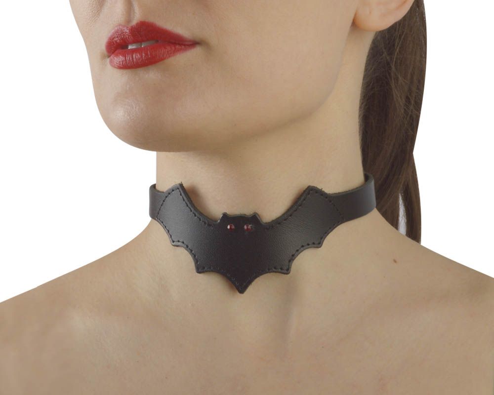 Чокер в виде летучей мыши изготовлен из натуральной кожи черного цвета. Регулируется при помощи кнопок.