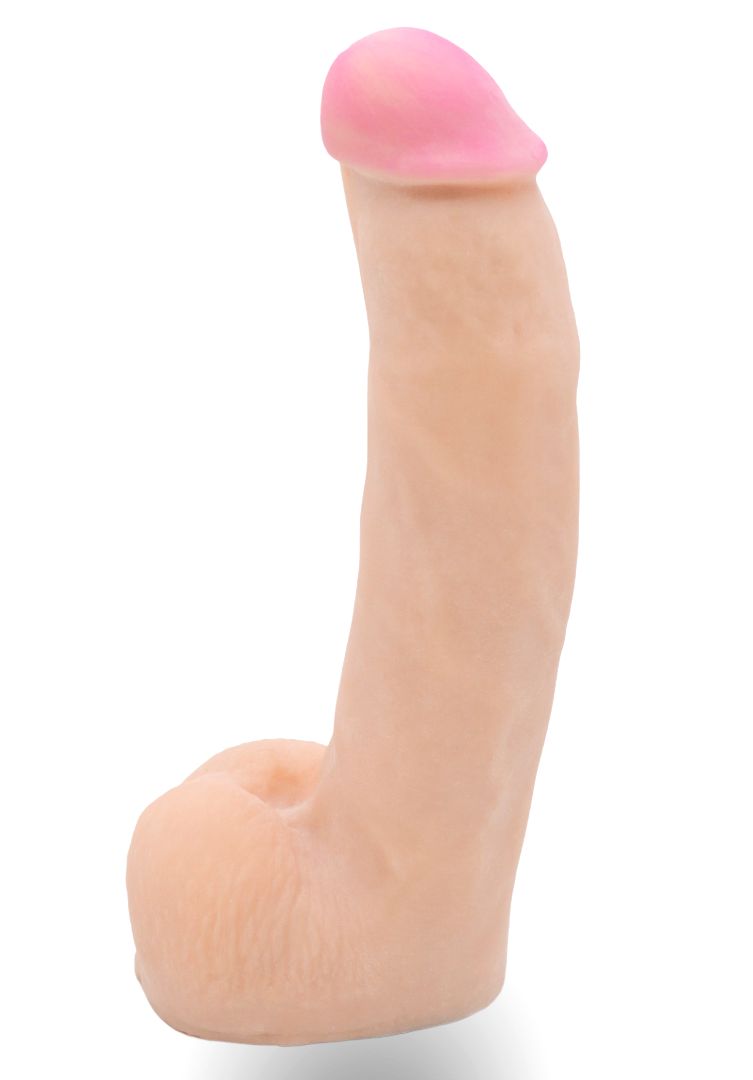 Это распространенный размер, подходящий большинству рожавших женщин. Реалистик имеет изгиб. За счет этого его можно вращать на бобышке, менять направление и даже ласкать мошонкой клитор. Имеет характеристики эрегированного мужского пениса. Рабочая длина - 17 см. Диаметр головки - 4 см.