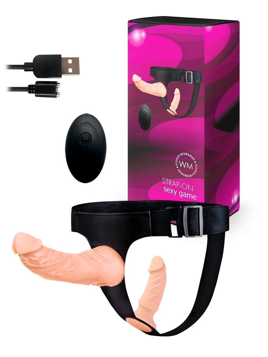 Оригинальная секс-игрушка подарит разнообразные эротические удовольствия обоим партнёрам. Режимы вибрации повысят уровень удовольствия и доведут до пика наслаждения. В комплект входят: два съёмных реалистичных вибратора, удобные трусики с эластичными ремнями, два съёмных коннектора, дистанционный пульт управления, USB-провод. Для использования в качестве страпона вибраторы накручиваются на вставленные в отверстия трусиков коннекторы. При этом удовольствие получают оба партнёра. Также вибромассажёры могут использоваться в качестве самостоятельных секс-игрушек для всех видов интимной близости. Вибратор большего размера гнётся в разные стороны. 10 режимов вибрации. Размер трусиков может регулироваться. Ремни хорошо тянутся, позволяя использовать изделие людям с разными параметрами тела. Длина большой насадки - 20 см, диаметр - 5 см. Длина малой насадки - 12,5 см, диаметр - 3,2 см.