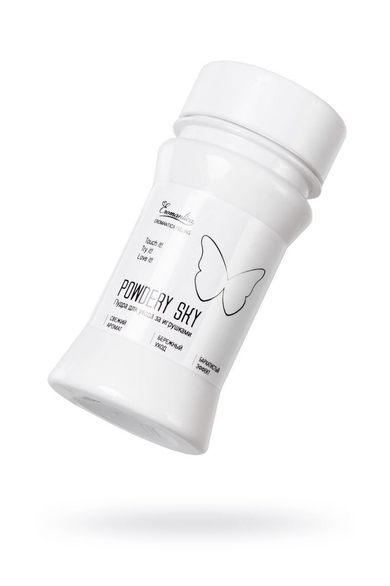 Невесомая пудра с ароматом мятной свежести для ухода за игрушками поможет надолго сохранить их первозданную эластичность и продлит срок использования! Легкое и равномерное распределение средства устранит эффект липкости поверхностей soft skin (киберкожа). Регулярное применение пудры обеспечит матовую бархатистость интимных аксессуаров и подарит комфортные ощущения, как при первом знакомстве! Ухаживайте с помощью Powdery Sky за любимыми девайсами после каждого применения и наслаждайтесь ее приятной заботой.
